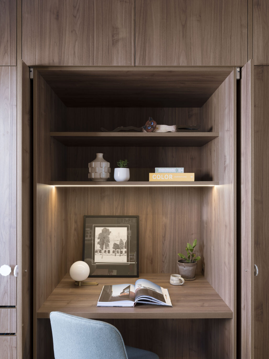 Service spaces and wet areas exude delight, with mellow tones, colour pops, velvety metal finishes and scale-conscious textures tying together each of these rooms.
