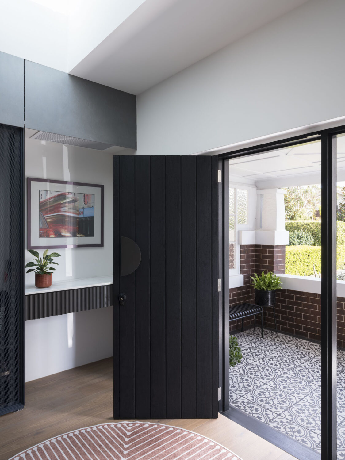 With the original dwelling structure, our first big move was to relocate the front entry from the side of the house to, oddly enough, the front verandah. This was met with some resistance from Council’s heritage officer, but ultimately our grit and experience paid off with vastly improved functionality, amenity and legibility to the original structure and the front elevation in particular.
